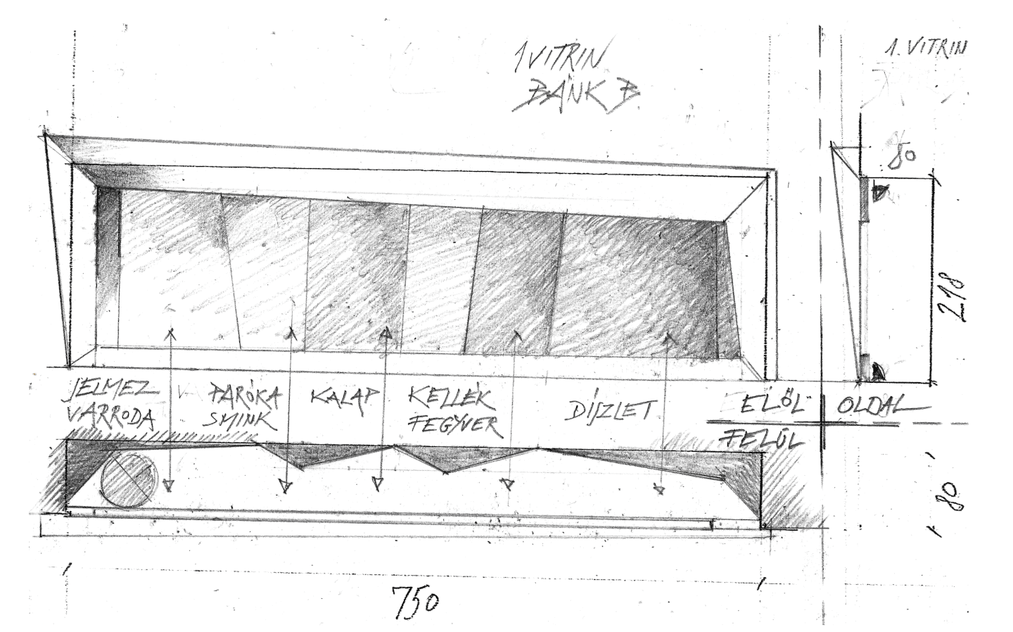 A kirakat üvegére helyezett okosfólián futó digitális installációban korabeli rajzokon látjuk az opera színpadát, díszletterveket. A filmben egyre újabb és újabb rétegek tárulnak fel, szereplők mozognak a díszletben, egyre többeket látunk, sorban változnak a helyszínek, és szereplők. A videó befejeztével feltárul a vitrin tartalma, látjuk az üveg mögé helyezett tárgyakat, kellékeket, jelmezeket stb.