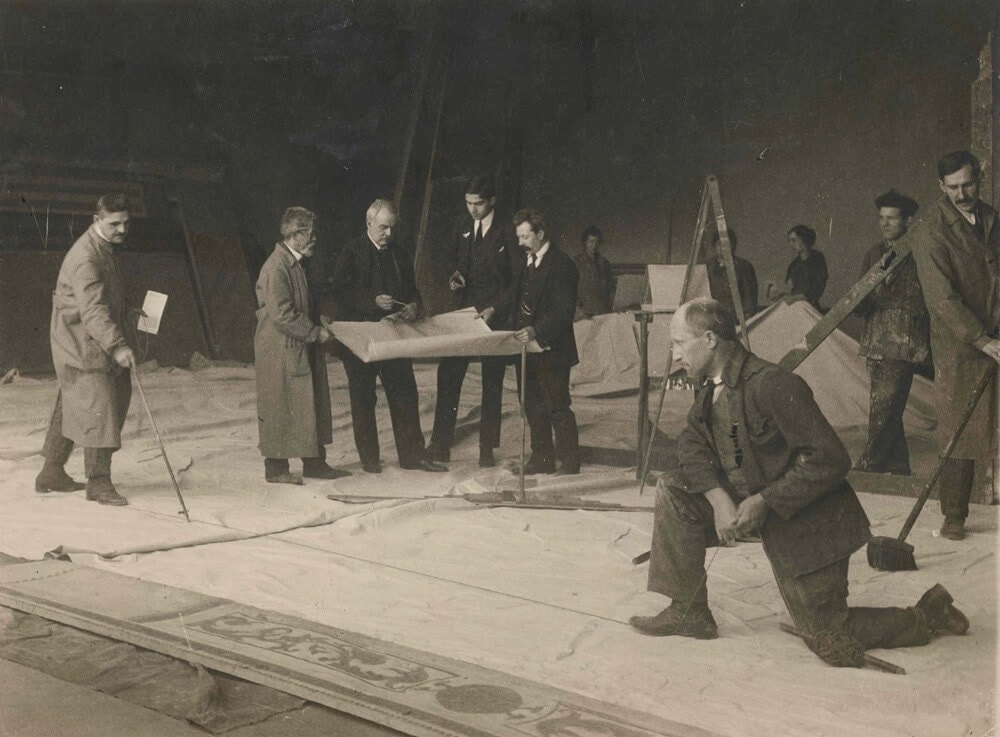 Például a Spannraft-féle festőműterem képeit és a jellegzetes, hosszú ecseteket látjuk. Spannraft és/vagy Oláh Gusztáv díszlettervein a korabeli díszítési és világítási technikákat lehet variálni és kipróbálni.