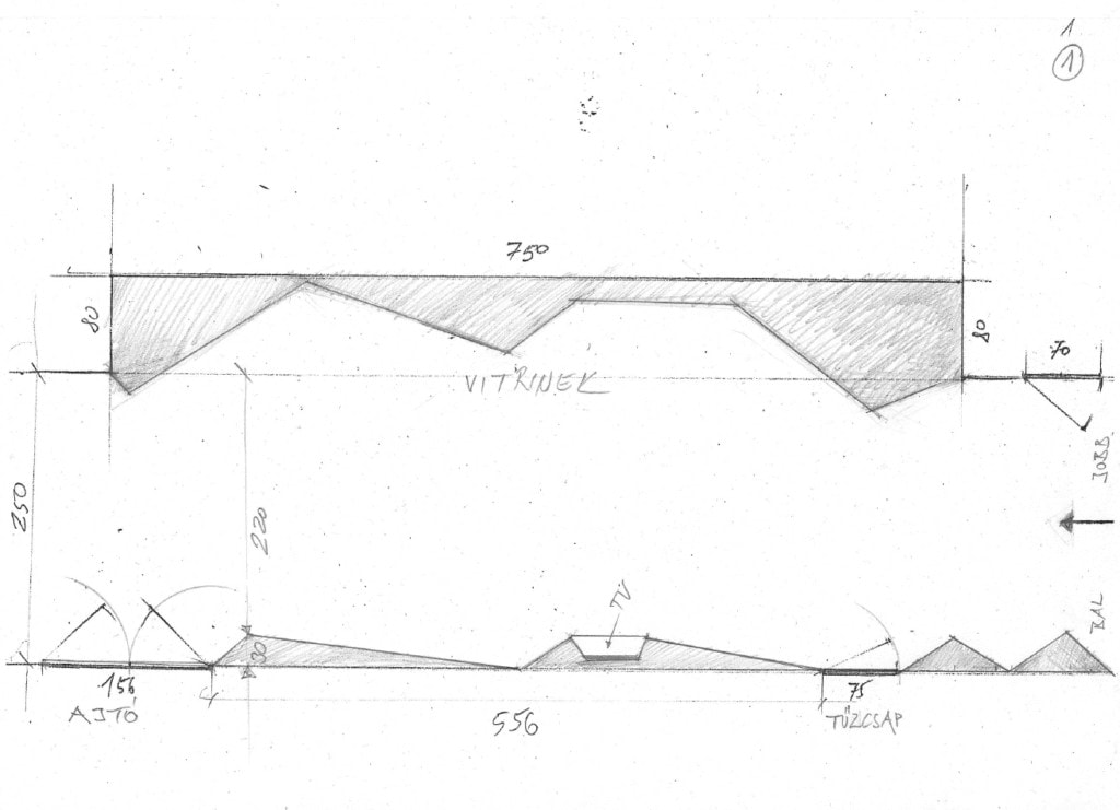 A folyosón jelenleg 4 egybefüggő „kirakat” van. Javaslatunk szerint szerencsésebb lenne az üvegfalakat megbontani, mozgalmasabb, érdekesebb, látványosabb felületet lehetne kialakítani.